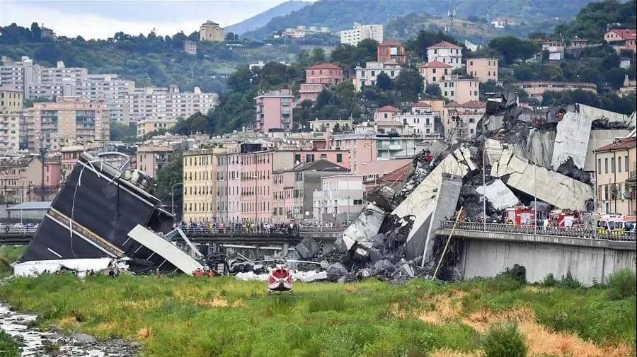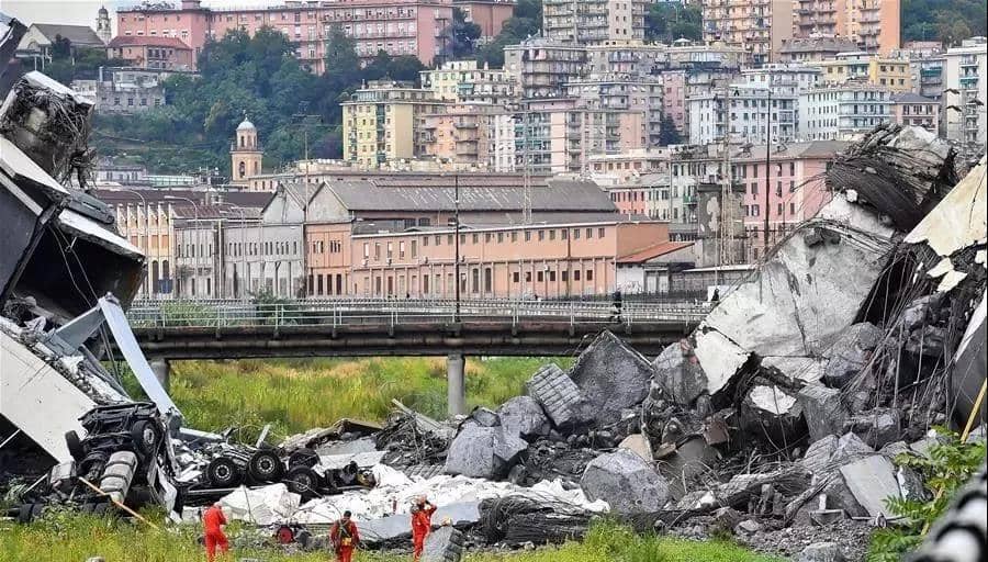据报道,2018年8月14日,意大利热那亚莫兰迪公路桥突然垮塌,事故造成43人死亡,多人受伤。事件造成大桥周围600多名居民被迫撤离,热那亚和意大利西北部地区及其通往法国的交通网络受到严重影响。