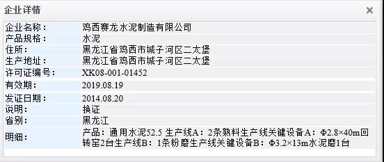 据业内人士介绍,用于出让的两条熟料生产线在2016年已关停拆除,近期黑龙江工信厅公布的生产线清单中也未提及这两条熟料生产线。市场监管总局生产许可办公室数据显示生产地址位于黑龙江鸡西市城子河区二太堡的两条熟料生产线生产许可证发证日期为2014年8月20日,有效期至2019年8月19日。