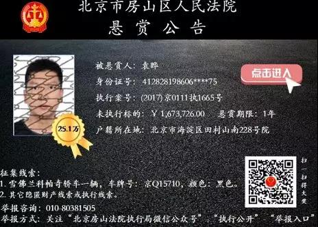 在法院支持了建材公司的诉求后,袁晔公司至今仍未履行判决,故房山法院发布悬赏公告,征集被执行人的隐匿财产线索或执行线索。