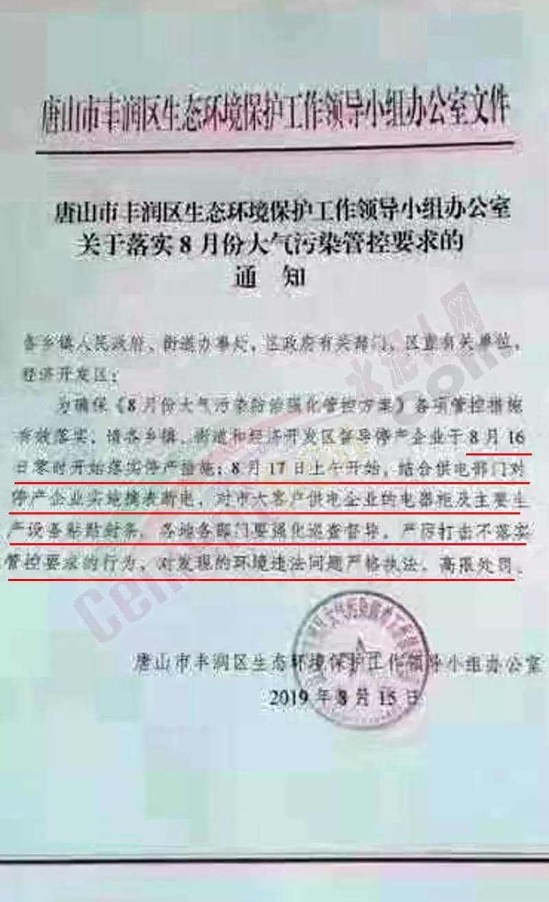 8月17日上午开始,结合供电部门对停产企业实施摘表断电,对市大客户供电企业的电器柜及主要生产设备粘贴封条,各地各部门要强化巡查督导,严厉打击不落实管控要求的行为,对发现的环境违法问题严格执法,高限处罚。通知原文如下: