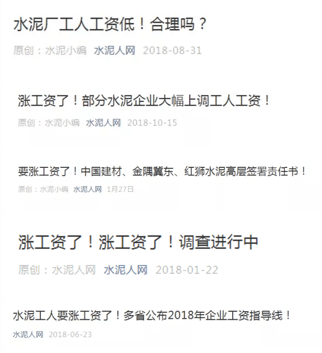 作为水泥行业中最大的新媒体平台,水泥人网也时刻关注着水泥人们的薪资情况,曾多次呼吁涨薪。