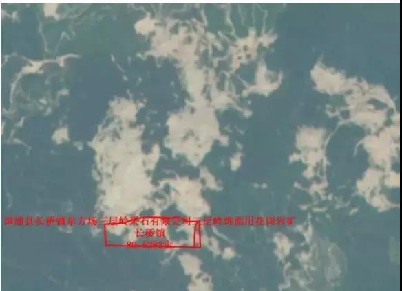 长桥镇东方场三层岭采石有限公司跨越矿区开采 周边大片“挂白”(红色框内为批复的合法矿区)