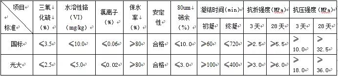 “凯城”牌P·C42.5水泥主要技术内控指标与国标对比