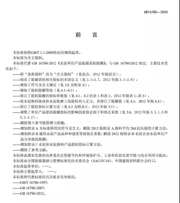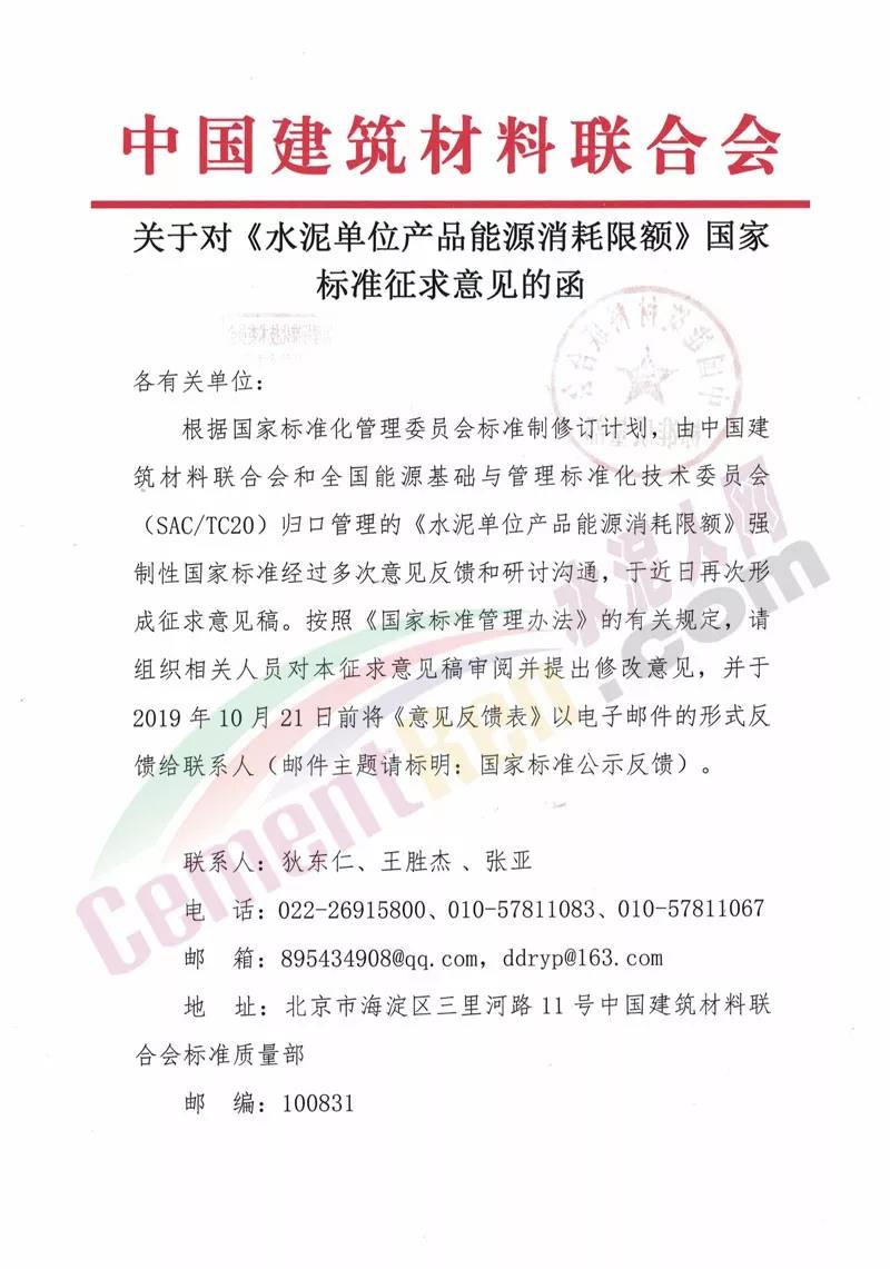 日前,来源:中国建筑材料联合会标准质量部 发布关于对《水泥单位产品能源消耗限额》国家标准征求意见的函天气:根据国家标准化管理委员会标准制修订计划,由中国建筑材料联合会和全国能源基础与管理标准化技术委员会归口管理的《水泥单位产品能源消耗限额》强制性国家标准经过多次意见反馈和研讨沟通,于近日再次形成征求意见稿。