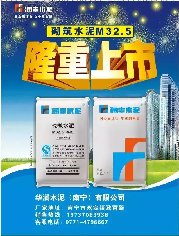 为满足用户的产品使用需求,润丰水泥积极响应国家新标准要求,率先进行产品升级,向市场推出砌筑水泥M32.5,该产品各项指标优于国家现行标准GB/T3183-2017《砌筑水泥》,质量稳定、性能更优。