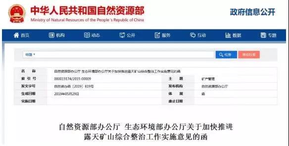 环保督查与矿山环境治理形势越来越严峻,未来5年,全国524个矿山地质环境重点治理区,在今年国务院安委会办公室发布《关于做好关闭不具备安全生产条件非煤矿山工作的通知》中提到,2019年要关闭1000处以上不具备安全生产条件非煤矿山。