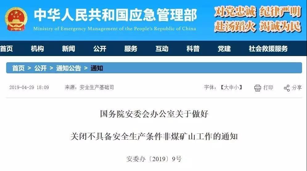 早在今年4月份,国务院安委会办公室发布《关于做好关闭不具备安全生产条件非煤矿山工作的通知》。