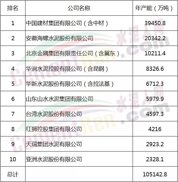 据水泥人网不完全统计,2018年全国水泥熟料产能17.16亿吨,其中,全国水泥熟料前十强的熟料总产能约为10.51亿吨,占全国水泥熟料产能的61.27%。