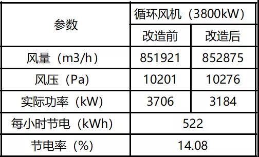 由于循环风机改造的成功,2018年底,莒县中联果断选择将其高温风机交由上海瑞晨改造,有了前一次的双方成功磨合经验,改造升级工程仅于2019年3月份便安装完成。在同等工况下对比,每小时节电量达到300kWh。超出改造技术协议要求(技术协议要求280kWh),项目于2019年4月顺利完成验收。