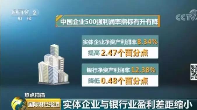 报告显示,中国企业500强利润率指标有升有降,其中实体企业净资产利润率为8.34%,提高了2.47个百分点;银行净资产利润率为12.38%,降低了0.48个百分点,一升一降,实体企业与银行净资产利润率差距进一步缩小。