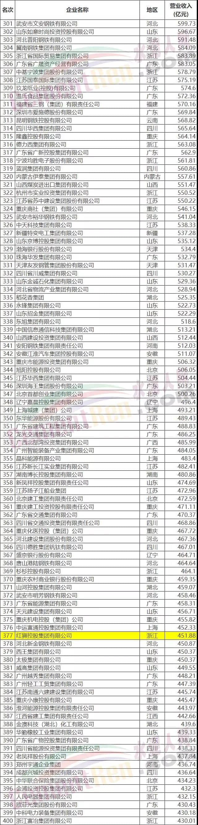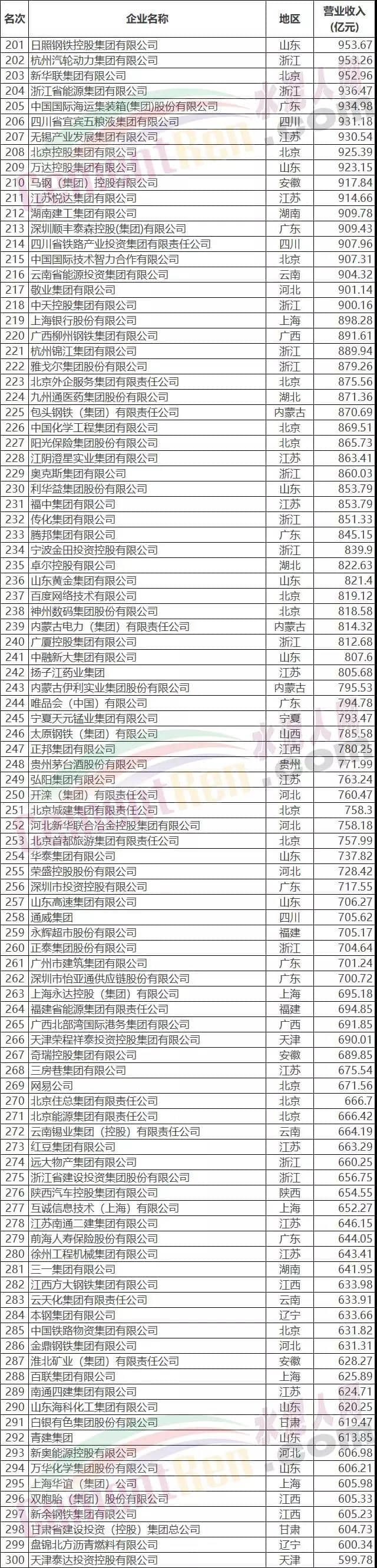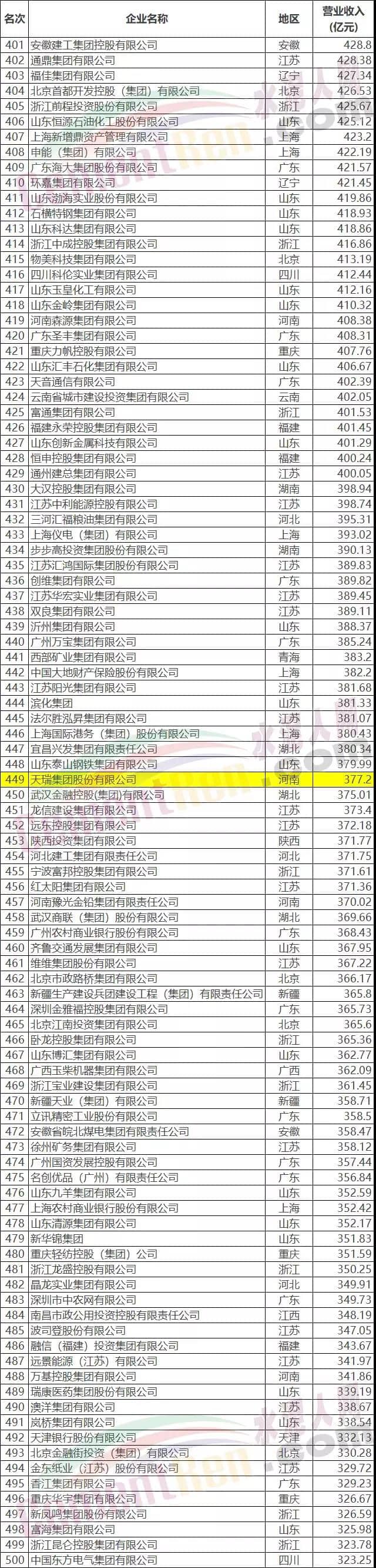门槛高:2019中国企业500强入围门槛已经提升至323.25亿元。