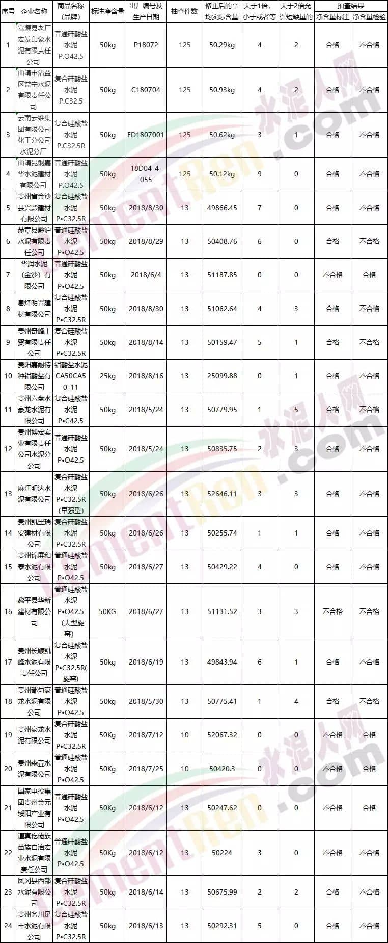 一直以来水泥行业的“瘦身水泥”、“分装水泥”屡被诟病,2018年西南云贵区域专门针包装水泥的净重做了抽查。抽查结果显示多家水泥企业袋重不足。