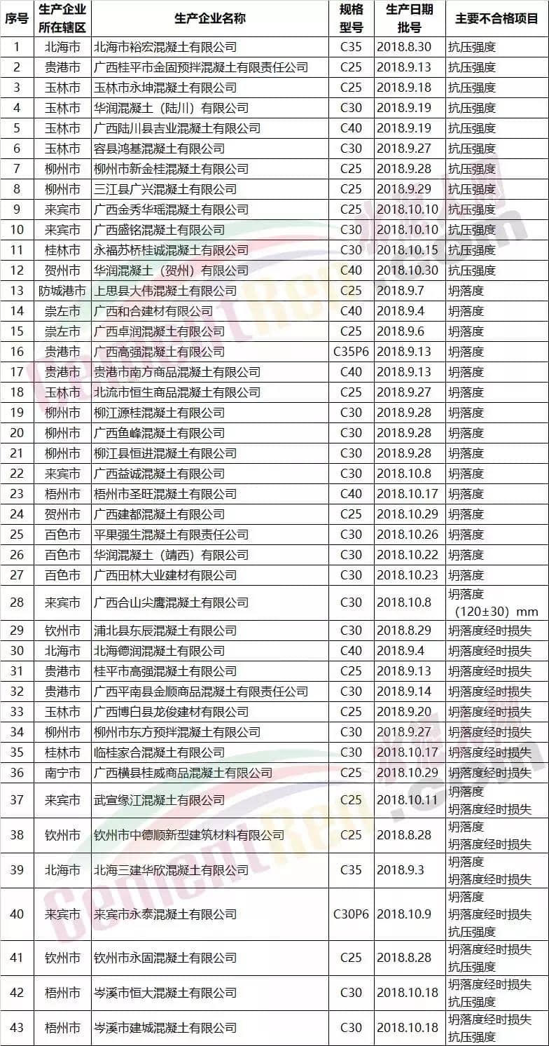 曾因质量被通报的部分混凝土企业名单:
