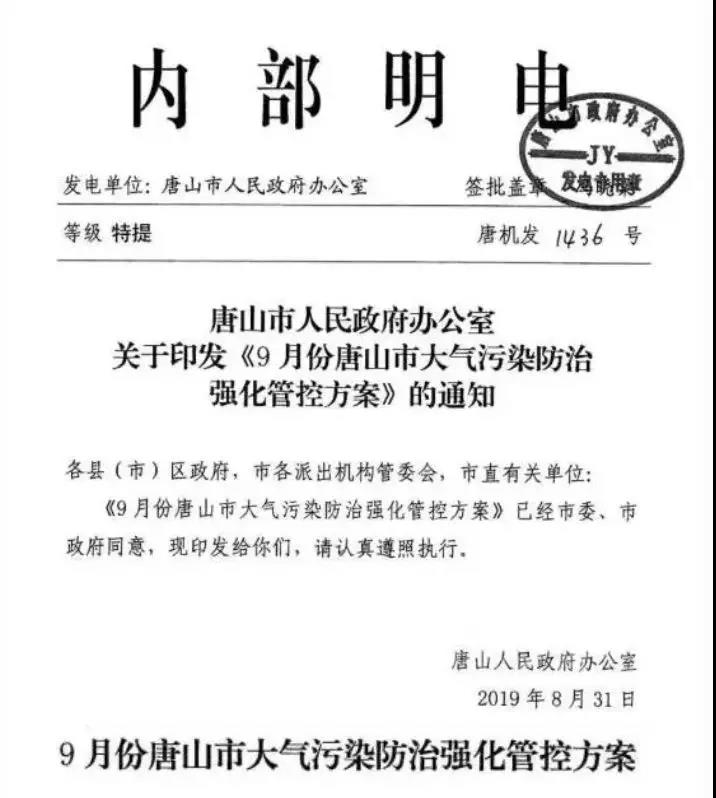 河北唐山市从今年2月份开始月月停限产,近期又发布了9月强化管控方案。对于未落实停限产措施的企业,当场切断电源,摘除电表,对负责人连夜实施行政拘留。