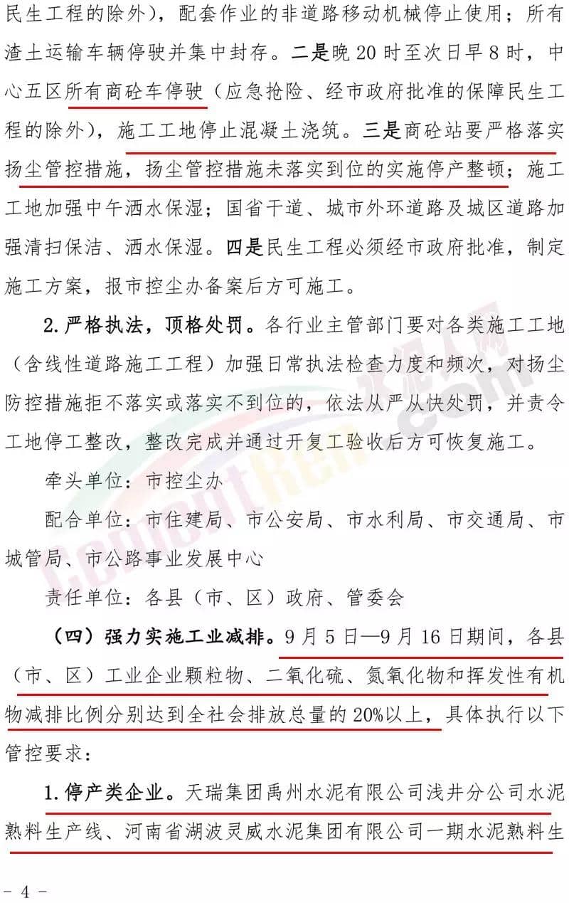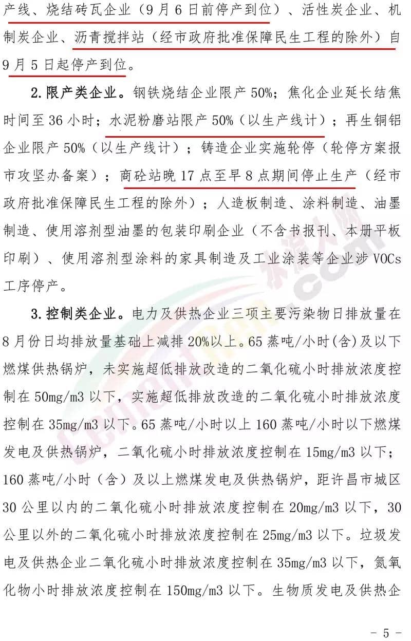 2、限产类企业中包括水泥粉磨站限产50%(以生产线计);商砼站晚17点至早8点期间停止生产。