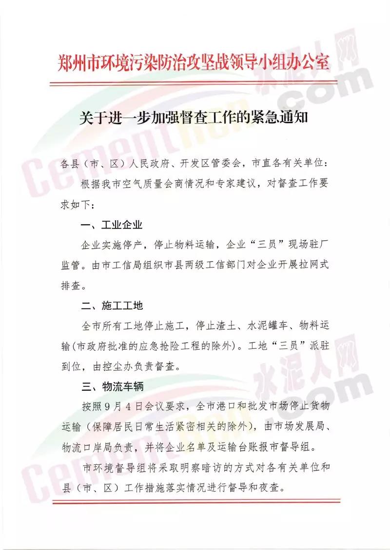 同期,郑州市环境污染防治攻坚战领导小组办公室发布了《关于进一步加强督查工作的紧急通知》通知称根据郑州市空气质量会商情况和专家建议,对督查工作提出要求。