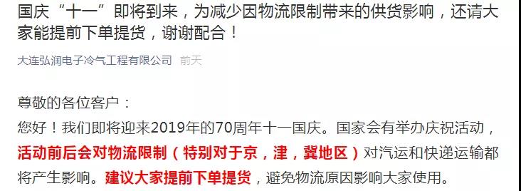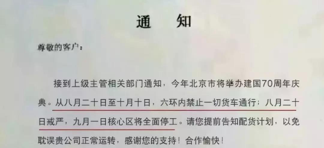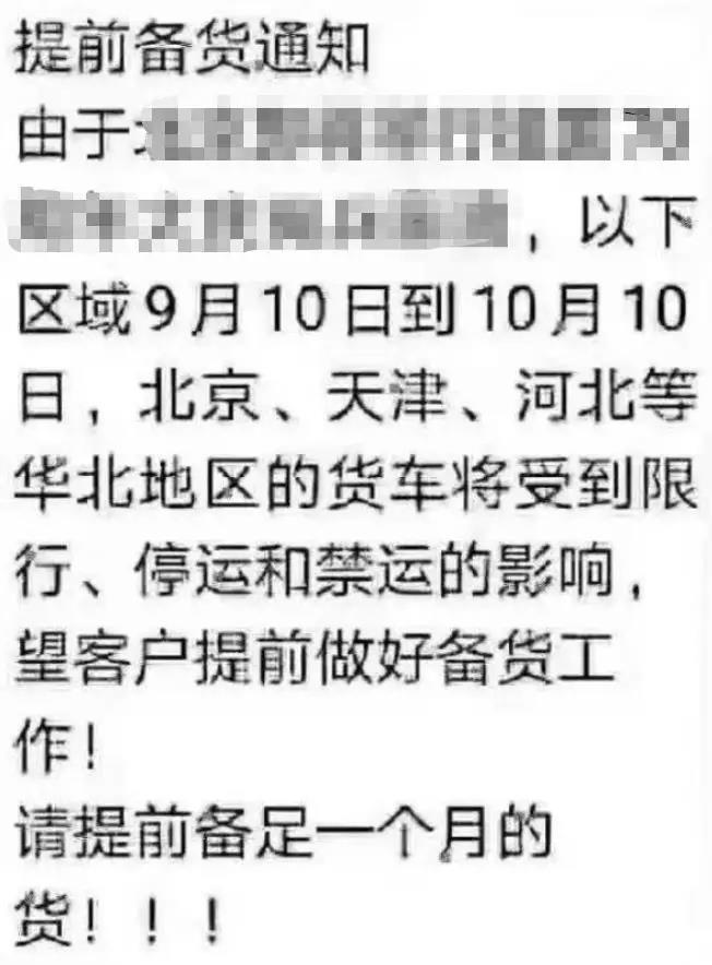 另外,京津冀周边各大企业表示:由于十一临近,河北、天津、北京等华北地区的货车将受到限行、停运、禁运的影响。
