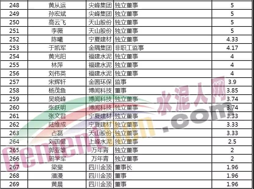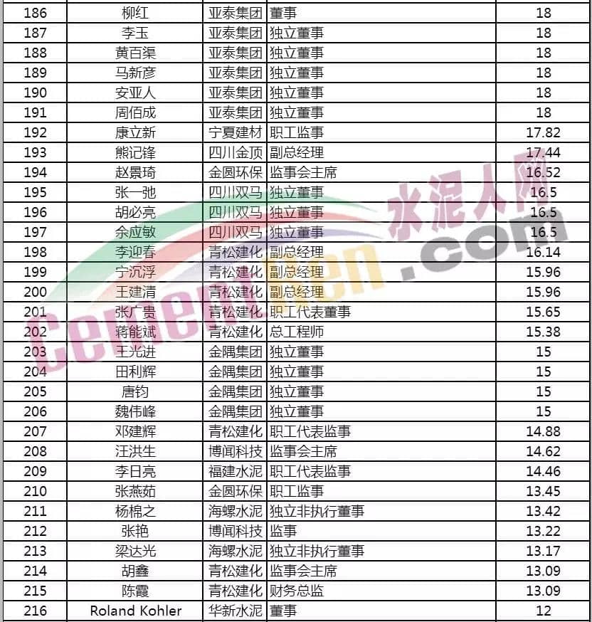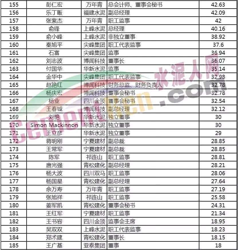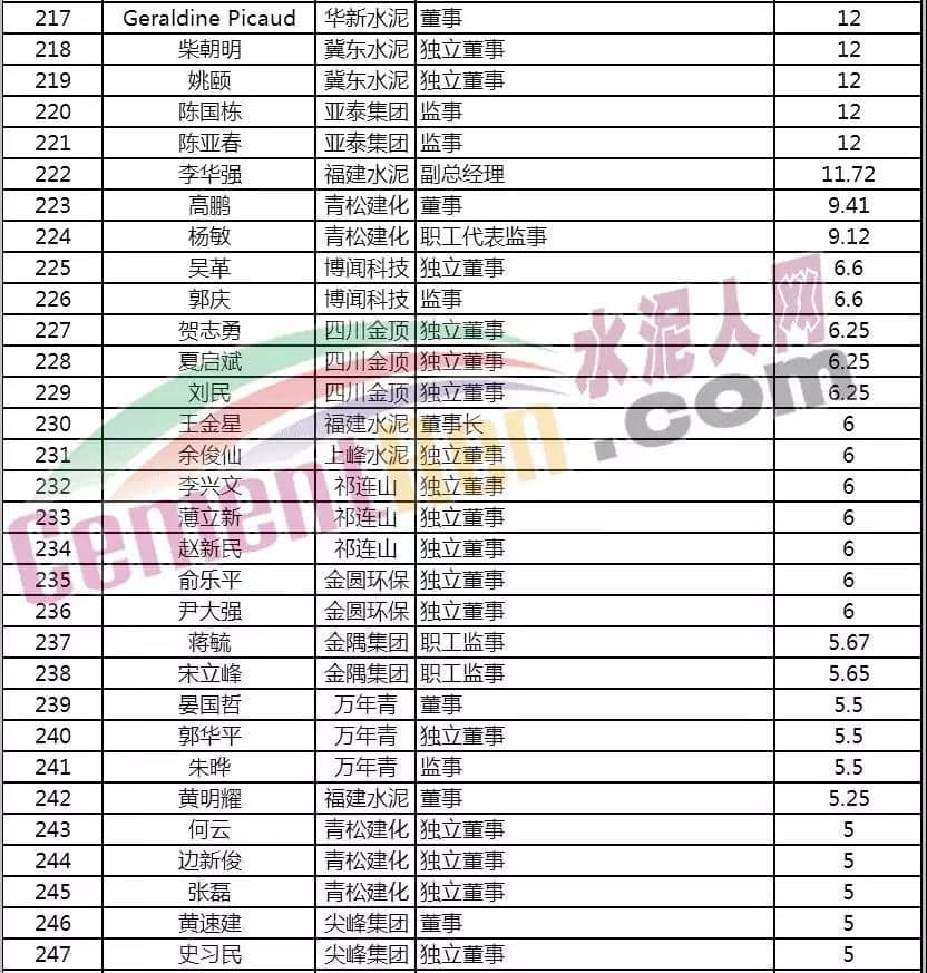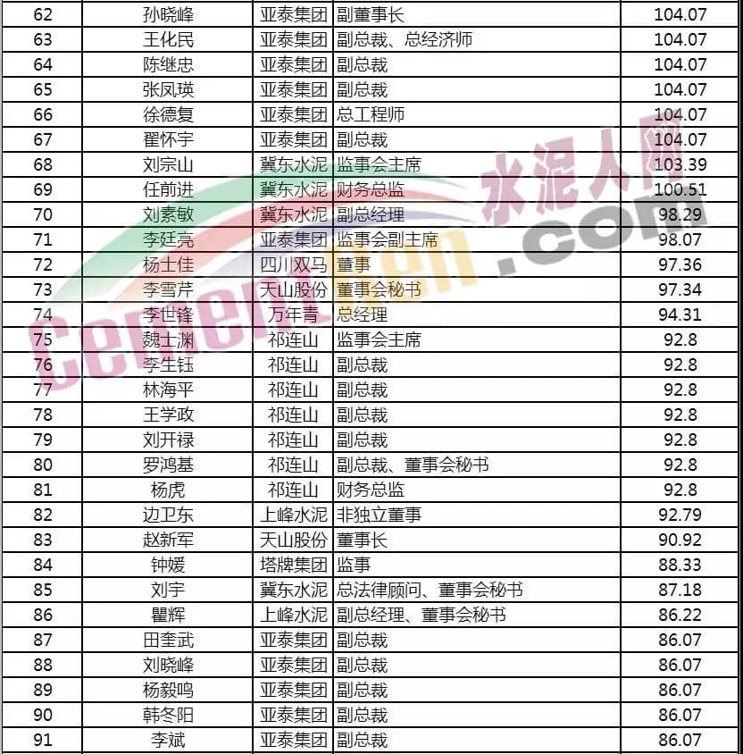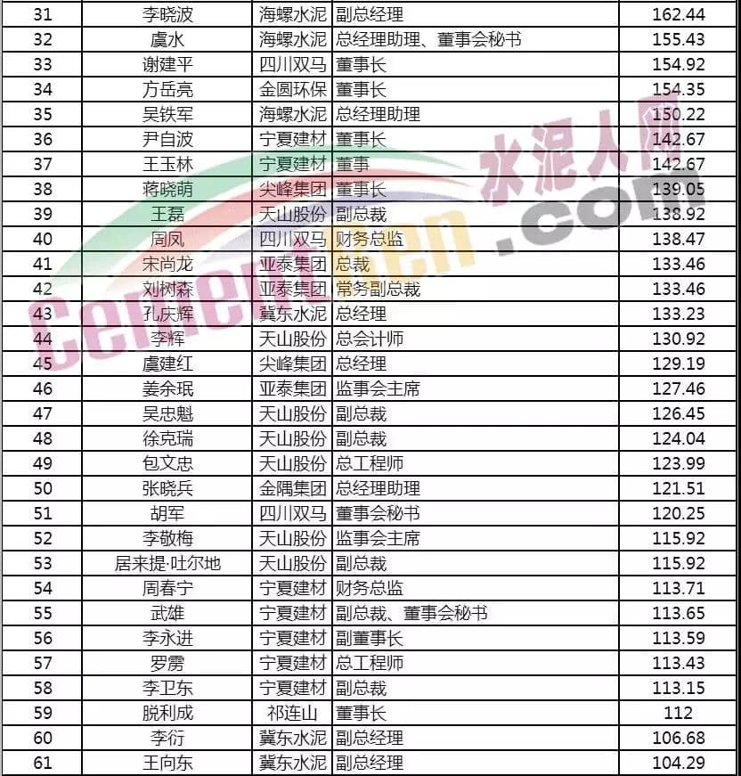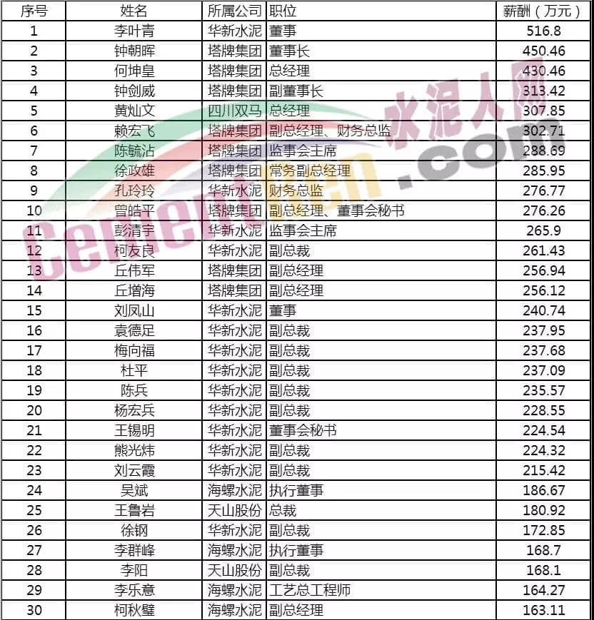 近期,各大水泥企业上市公司陆续发布2019年半年报,上半年水泥企业赚得盆满钵满。而各大水泥集团企业的一把手和管理层的工资收入也同期公布出来。