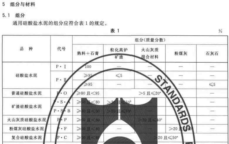 据水泥人网了解,通用硅酸盐水泥GB175-2007国家标准中明确规定了通用硅酸盐水泥的组分与材料,强度等级,技术要求试验方法以及检验规则和包装、标志 、运输 与贮存等。国家标准按照混合材的品种和掺量将普通硅酸盐水泥的分为硅酸盐水泥、普通硅酸盐水泥、矿渣硅酸盐水泥、火山灰硅酸盐水泥和复合硅酸盐水泥。