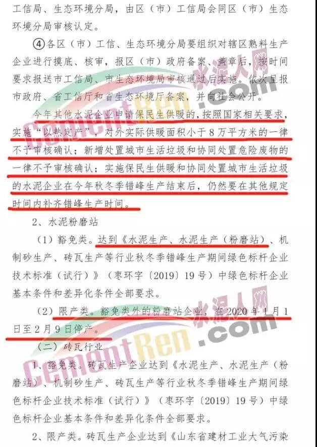 限产类。豁免类外的粉磨站企业,在2020年1月1日至2月9日停产。全文如下: