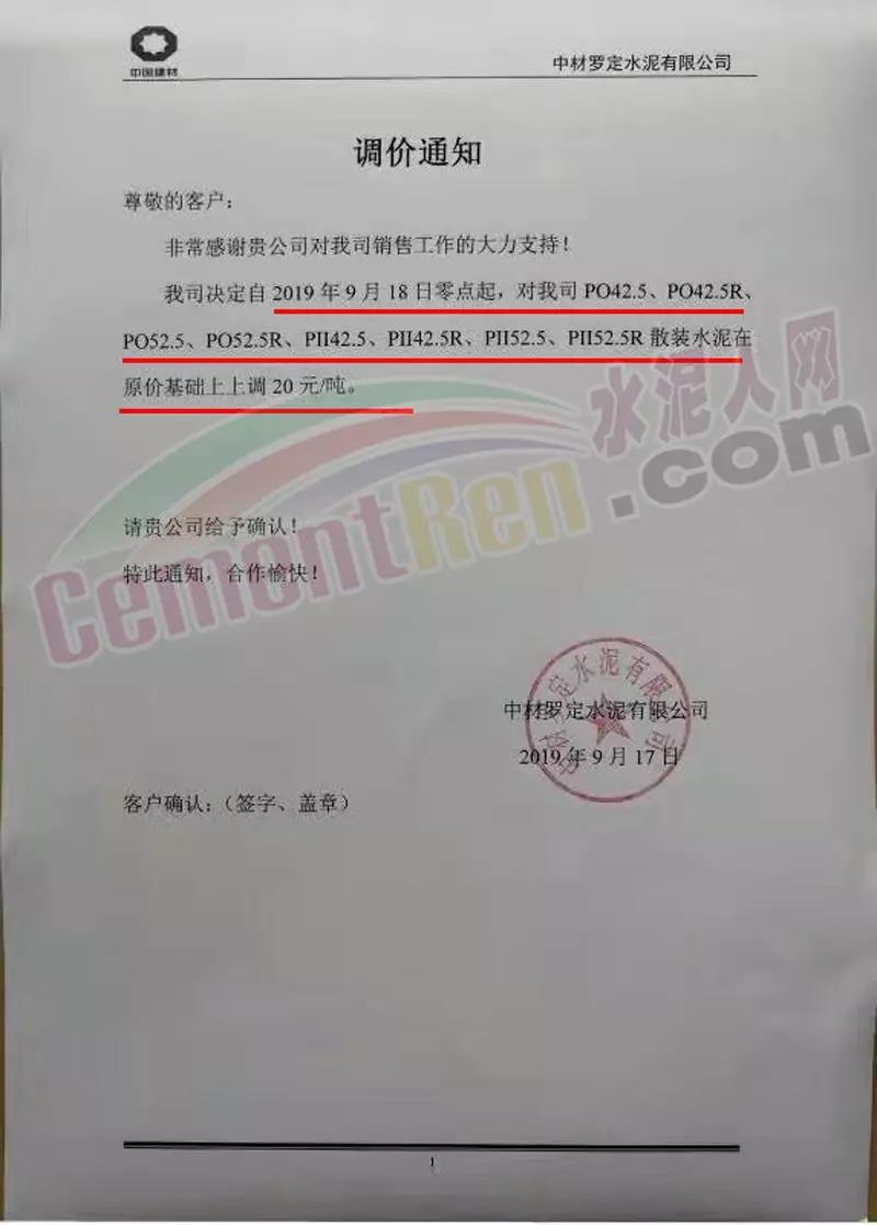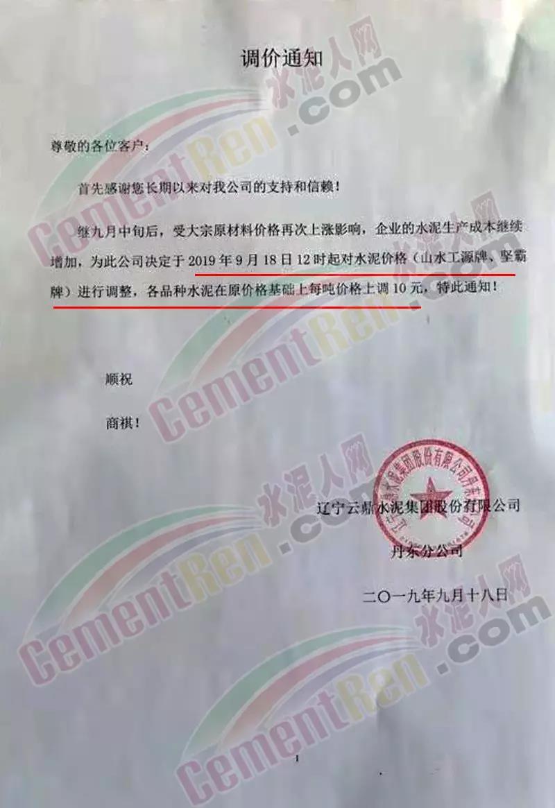 据了解,上述水泥价格上涨多因上游原材料矿粉,混合材,以及煤炭价格上调导致的成本增加继而传导涨价。亦有部分是政策面因素,停限产导致部分区域库位较低,供应不足。为保供重点项目,部分企业上调了水泥价格。昨日(9月18日)辽宁云鼎水泥集团 股份有限公司发布调价通知称,继九月中旬后,受大宗原材料价格再次上涨影响,企业的水泥生产成本继续增加,为此公司决定于9月18日12时起对水泥价格(山水工源牌、坚霸牌)进行调整,各品种水泥在原价格基础上每吨价格上调10元。