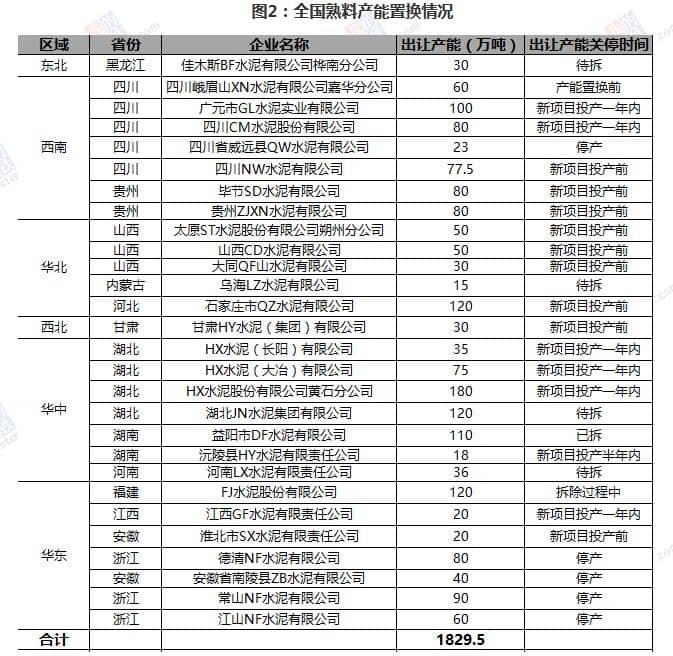 随着2019年水泥行业大气污染防治攻坚战实施方案实施,要求实现水泥行业压减落后熟料产能7000万吨,全国平均产能利用率达到70%以上。自律淘汰2000t/d以下的水泥生产线,对2000t/d以上的技术落后的生产线进行减量置换改造。实际2019年全国水泥行业落实情况如何呢?百年建筑网行情资讯中心对产线更替情况进行了统计: