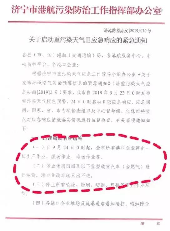 据水泥人网了解,近期北京、天津、河南、河北、山东、山西、江苏、安徽均发布了橙色及以上重污染天气预警。要求区域内相关企业单位停工、停产、停运,同时要求相关港口停止作业。山东省多家港口企业停止作业,港口集疏车辆只进不出。自9月24日起,济宁市所有港口企业停止一切生产作业、煤场作业、堆场作业,同时停止使用国四及以下重型载货汽车(含燃气)进行运输,港口集疏车辆只进不出。