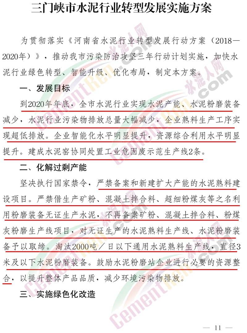 《三门峡市水泥行业转型发展实施方案》全文如下: