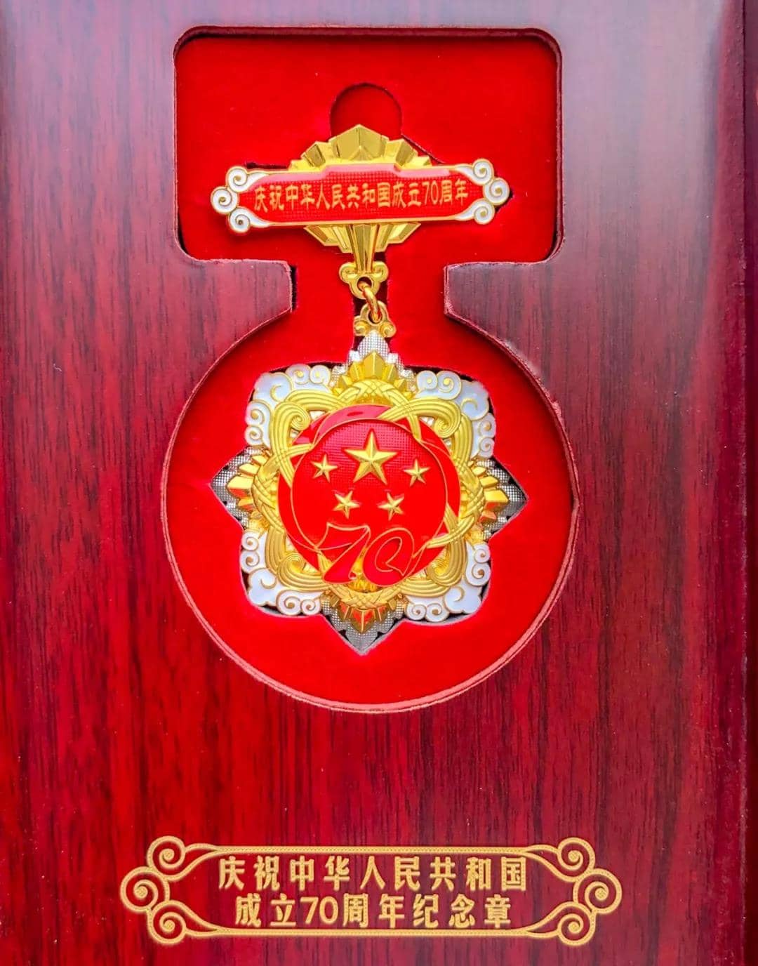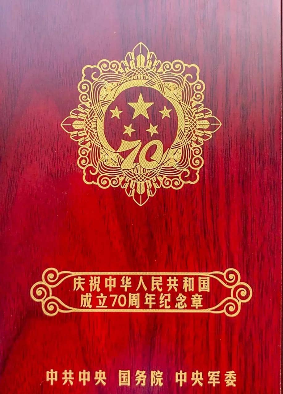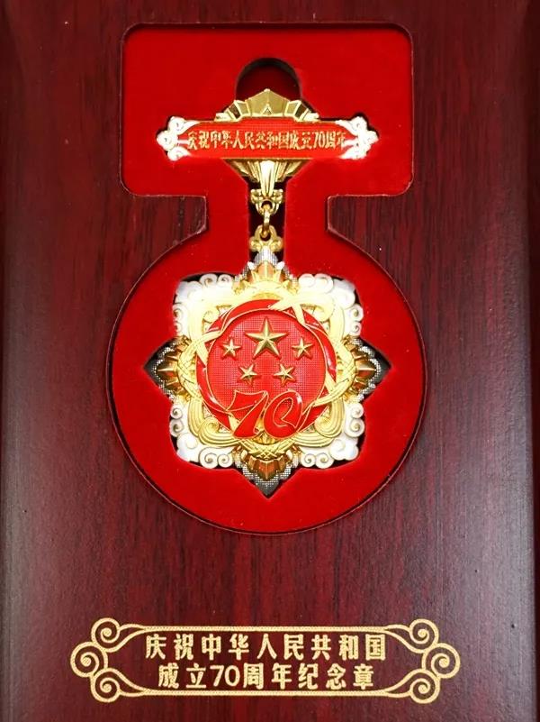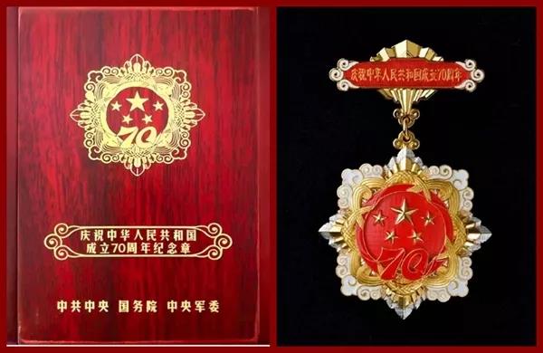 由中共中央、国务院、中央军委颁发的“庆祝中华人民共和国成立70周年”纪念章,是新中国成立70周年系列庆祝活动的重要组成部分,旨在表彰中华人民共和国成立前参加革命工作和健在的老战士老同志、中华人民共和国成立后获得国家级表彰奖励及以上荣誉的人员、中华人民共和国成立后因参战荣立一等功以上奖励的军队人员,以及为中华人民共和国成立作出杰出贡献的国际友人。