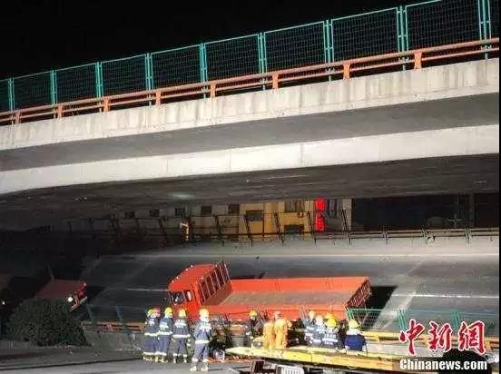 事故现场附近一车辆的行车记录仪拍到了高架桥倒塌的惊险瞬间。从视频中看到,至少两辆轿车在正常行驶中被突然压在桥下。来源:@新华视点