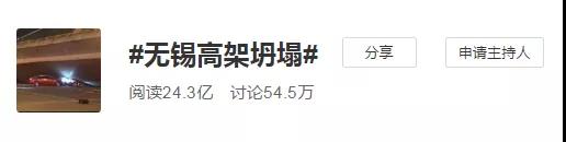 无锡桥梁侧翻坍塌,专家有话说无锡高架桥垮塌事故发生不到24小时,微博热搜#无锡高架坍塌#阅读量超过24亿,讨论数量超过54万。