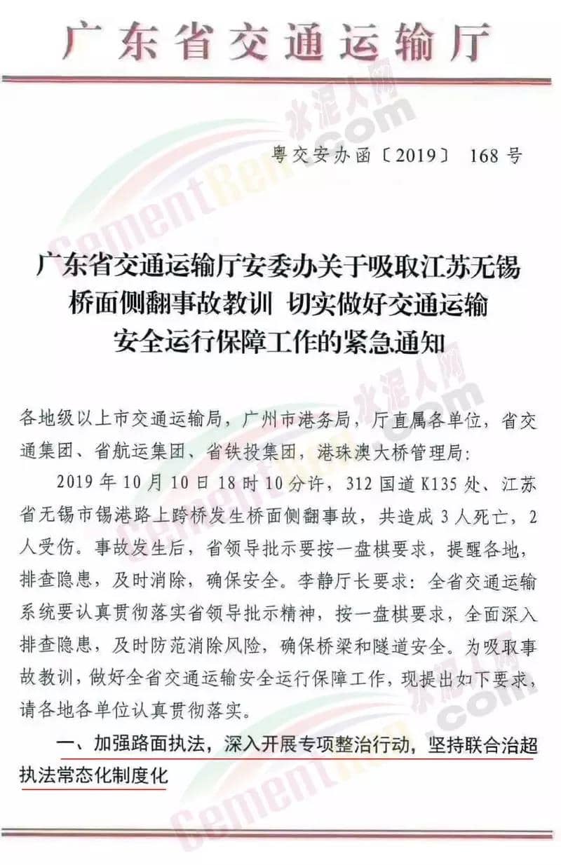 昨日(11日)广东省交通运输厅下发《广东省交通运输厅安委办关于吸取江苏无锡桥面侧翻事故教训 切实做好交通运输安全运行保障工作的紧急通知》(粤交安办函【2019】168号)