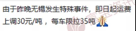同期物流企业通知运费上调30元/吨且每车限拉35吨。