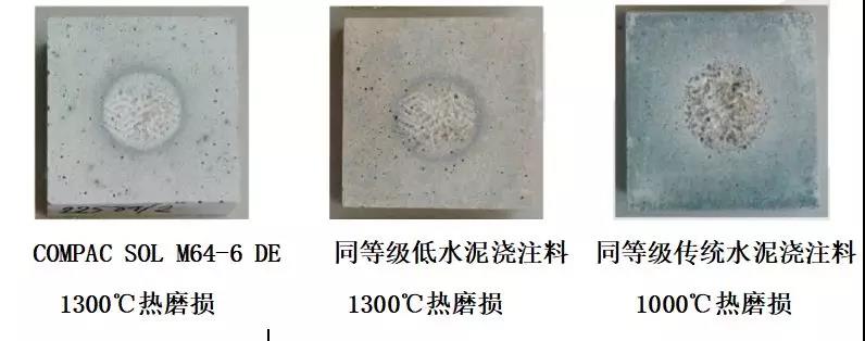 不同于常规浇注料的水泥基结合,本产品的结合剂为纳米级硅溶胶,该凝结方式取代了复杂的铝酸钙相水化结合,采用新型结合剂—DIVASIL/DIVASIL FP。无水泥浇注料(COMPAC SOL / CARSIT SOL)与传统低水泥浇注料(LCC)对比。