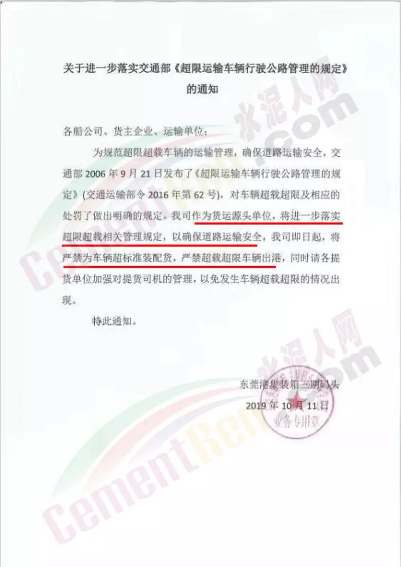 东莞港集装箱三期码头发布《关于进一步落实交通部<超限运输车辆行驶公路管理的规定>的通知》称,作为货运源头单位,将进一步落实超限超载相关规定,以确保道路运输安全。即日起,将严禁为车辆超标准装配货,严禁超载超限车辆出港。