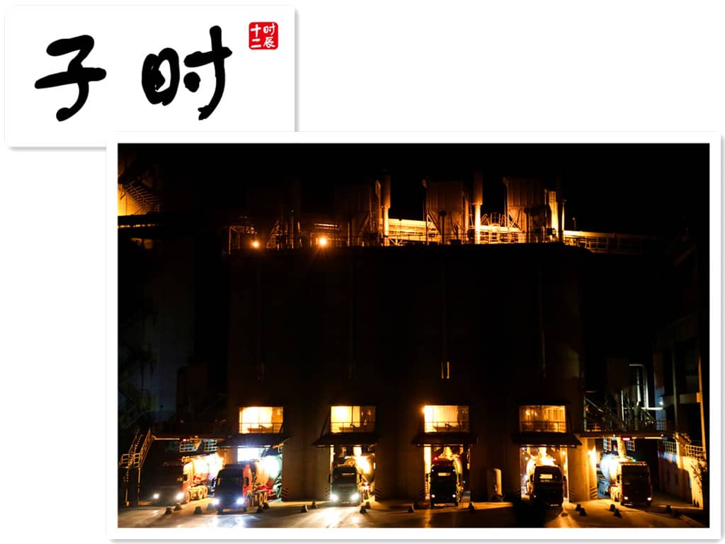 子时(23:00—1:00)“子时夜半动人愁”。公司发运广场的散装区依然是一副“车水马龙”的盛况。