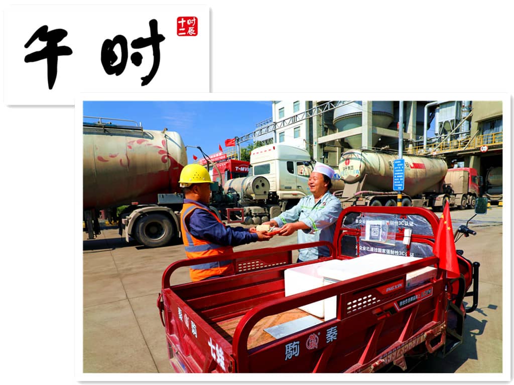 午时(11:00—13:00)“午时红日正居中”。穿梭在散装车之间,为客户提供午餐服务,践行“客户至上”的服务理念。