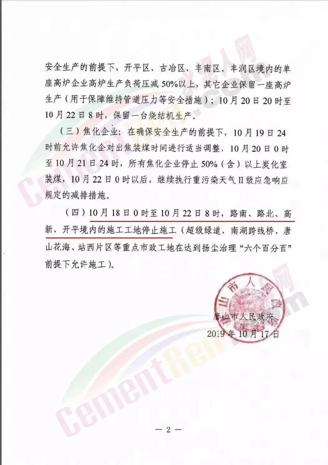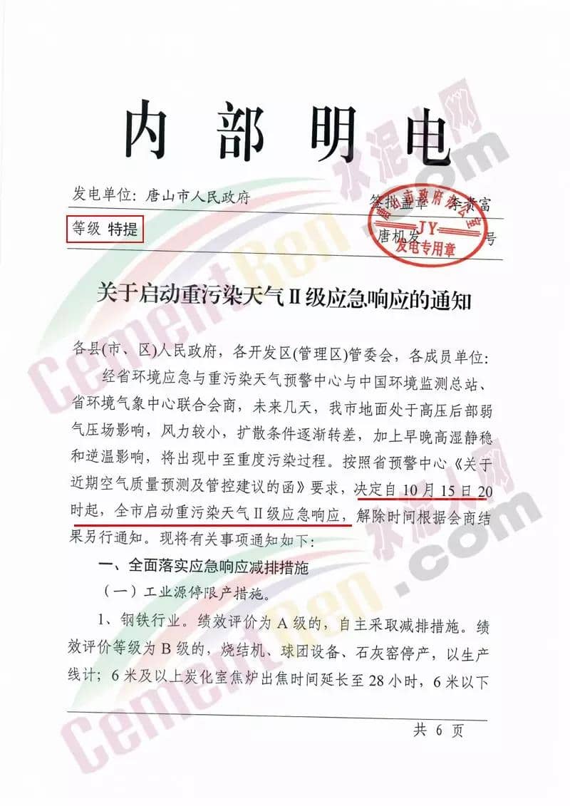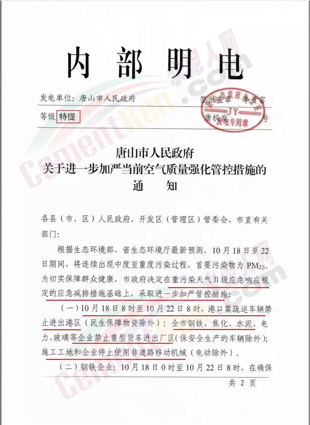 河北唐山三天发两份特提文件,要求水泥停产,禁运,工地停工