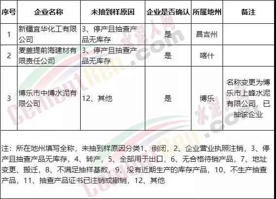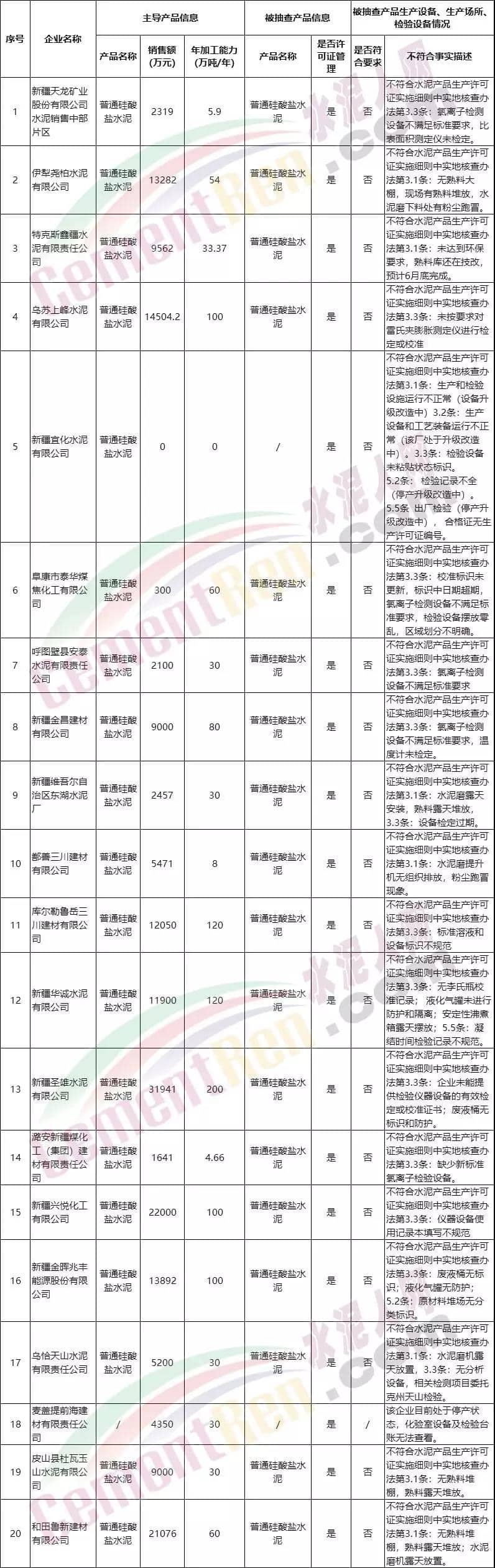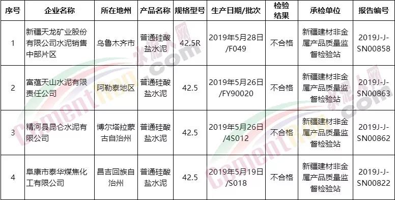 2019年自治区水泥产品质量监督抽查未抽样企业名单不仅新疆地区,近一年,已经多个区域市场监督管理局通报抽检不合格品名单详情如下: