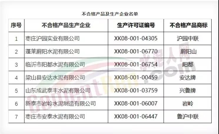 3月中旬,合肥市工商行政管理局网站发布《2018年合肥市产品质量监督抽查状况分析报告》。《报告》显示,2018年,合肥市范围内共监督抽查了919家生产企业的1235组样品。经检验,其中不合格,不合格产品检出率为4.21%。其中,1组水泥的28天抗折强度、28天抗压强度项目不合格。同期,山东省市场监管局对全省130家企业生产的130批次水泥产品进行了监督抽检,检测发现,临沂市阳都水泥等7家企业生产的商标为阳都等水泥产品不合格,不合格项目为氯离子、烧失量等。