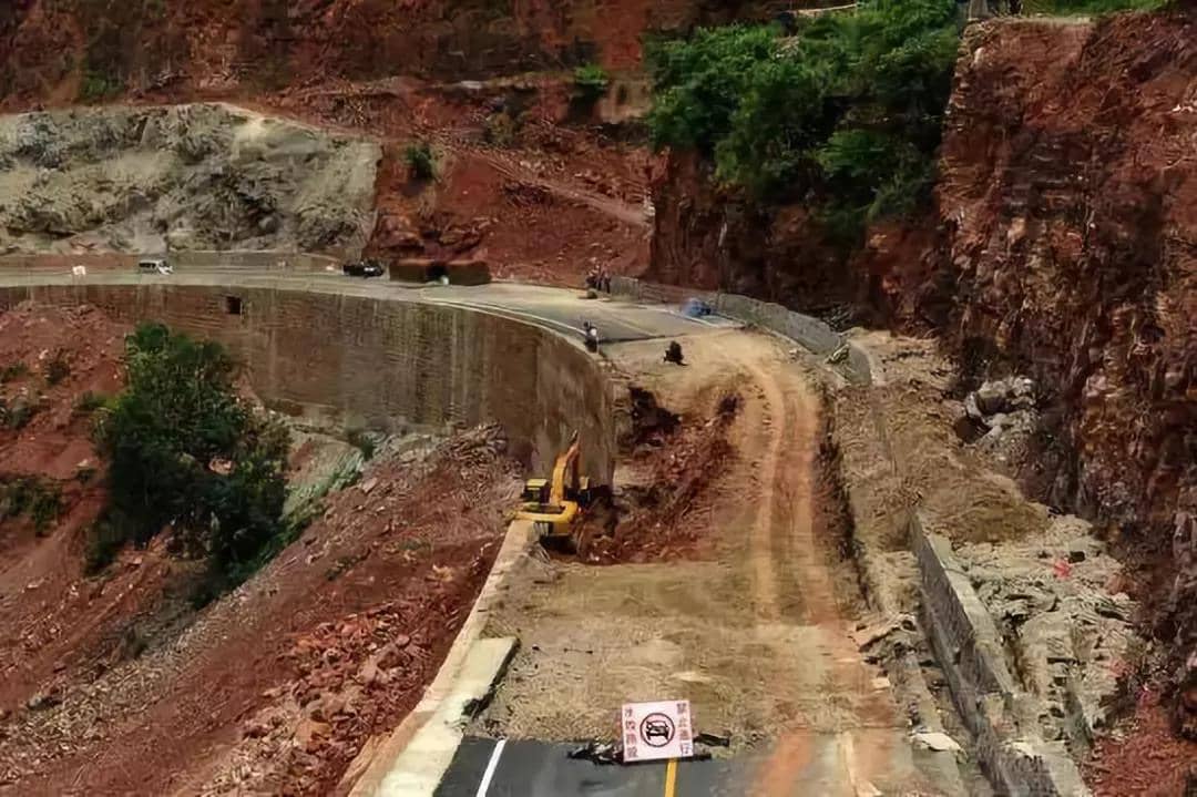 云南新路,通车的第二天出现坍塌。