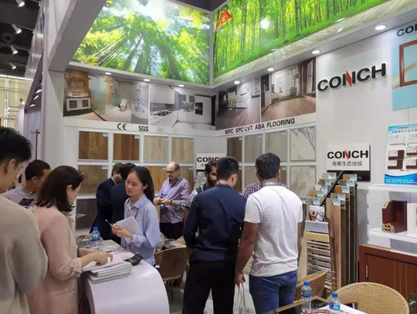 展会期间,海螺型材公司全屋定制产品海螺生态地板、系统门窗、生态门、节能附框、管材等华丽亮相。