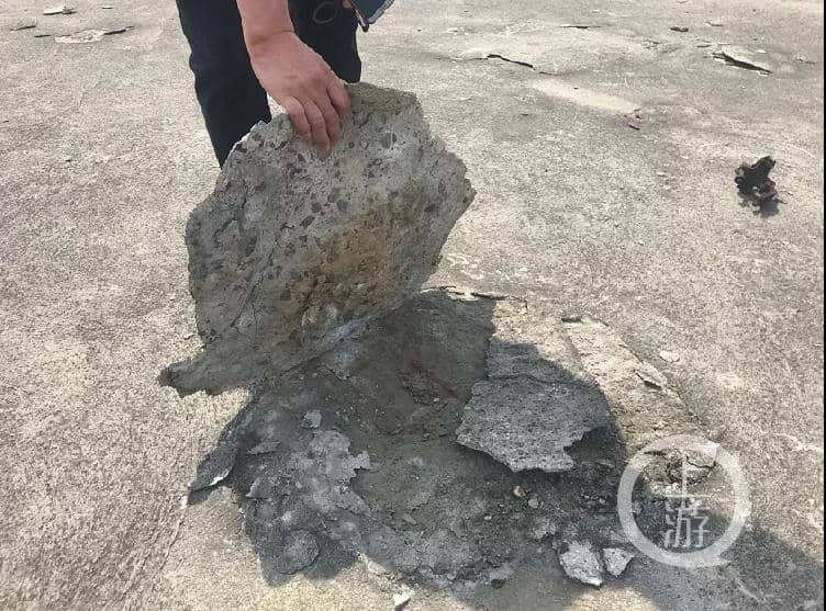 ▲掰开的混凝土块中还能看到生锈的钢渣痕迹。摄影/上游新闻记者 时婷婷