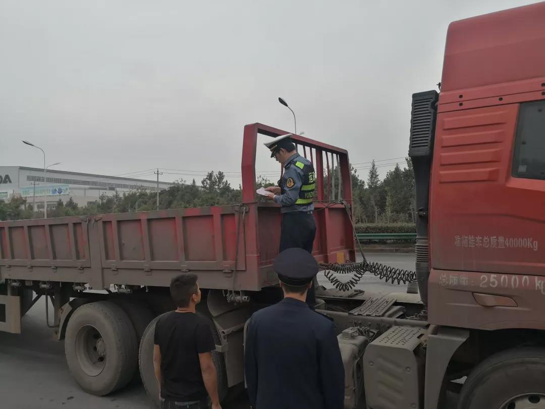 执法人员首先在采石外桥处设点,对途径马鞍山市的各类货运车辆逐台进行检查。