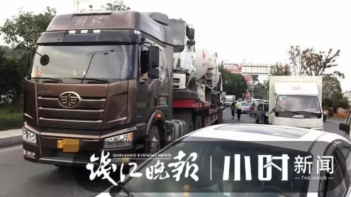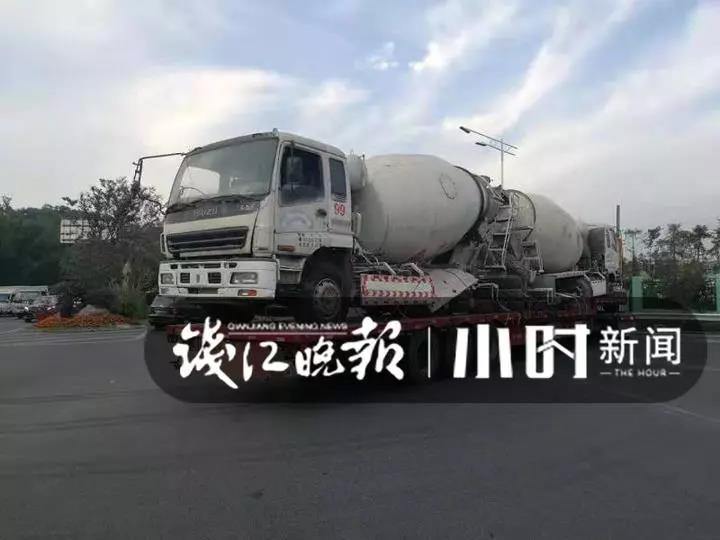 据了解,这4辆水泥搅拌车属于同一公司所有,因业务需要,需转移到其他城市,为节省运费,所属公司想出“奇招”,将其放至半挂车,以“车背车”的方式拖运。(来源:钱江24小时)