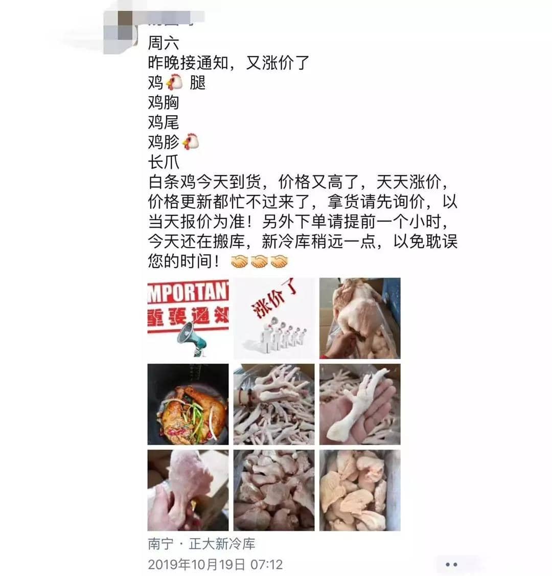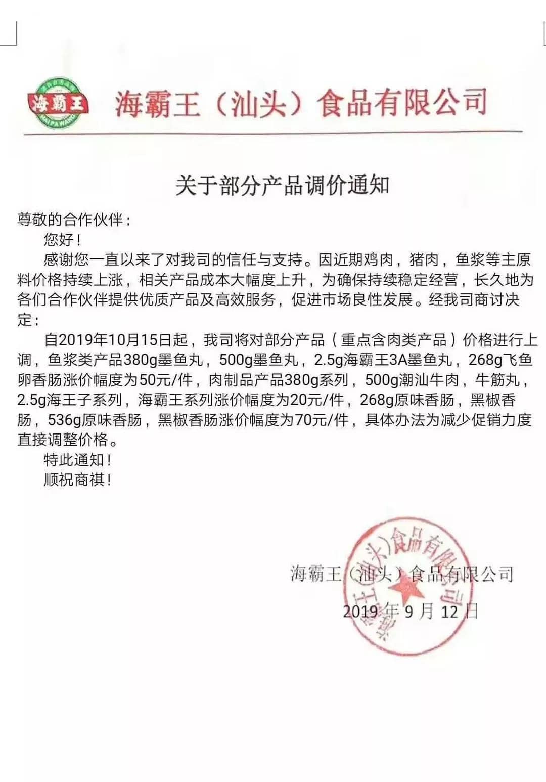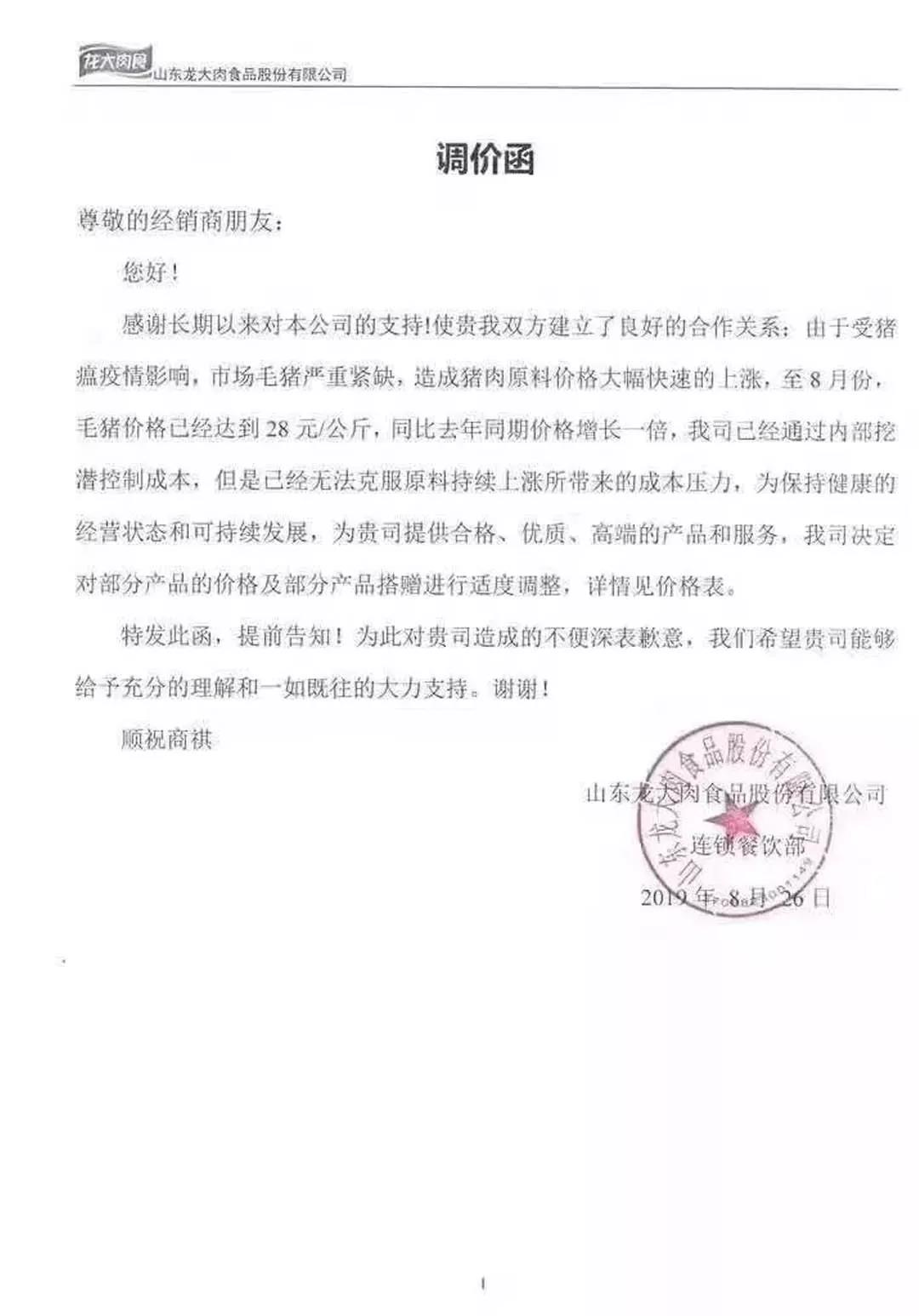 调价通知函一个接一个这不,继9月份猪肉涨价潮之后,又一波企业的调价通知函新鲜出炉了!博士学者有在相关行业工作的朋友反应,冷冻食品也受到了影响。三全餐饮、海霸王食品、龙大肉食、御冠食品、馥华食品等领先开涨,碧海食品、漳州兴威食品、山东好主妇食品、丸滋食品等随后跟进,涨价产品不仅涵盖香肠、培根等猪肉制品,还有鸡腿、鸡排、鸡胗等鸡副产品和鸭肉制品、水产品等。真是应了那一句:所有和肉相关产品,都涨价了!