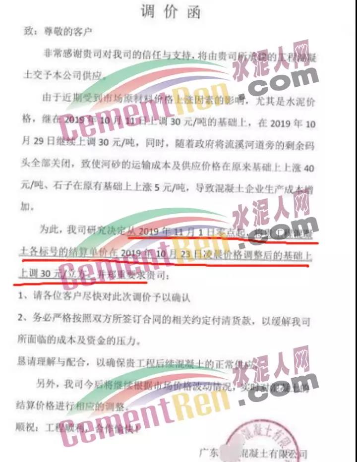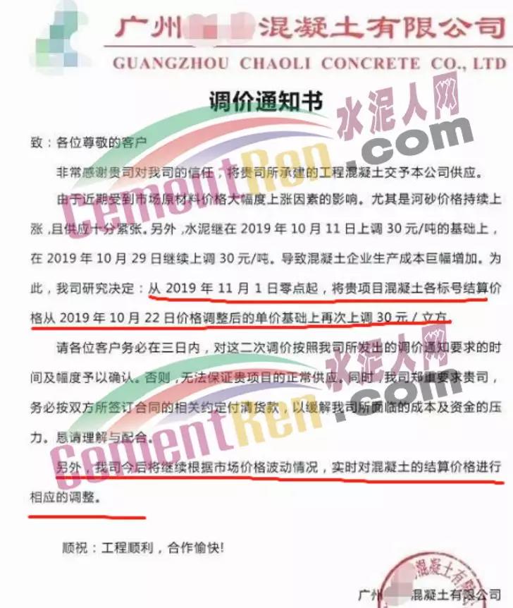 山东多地水泥企业熟料供应持续偏紧,临沂、济宁、菏泽、日照、淄博、潍坊等地区水泥行情普遍上涨20-40元/吨。青岛、临沂、日照、枣庄等地区再次上涨20-30元/吨。 受水泥价格、砂石价格持续上涨的影响,近日,混凝土行业也迎来了新一轮涨价,据水泥人网了解,从目前多家混凝土企业发布的涨价通知来看,近半个月的时间里,混凝土价格已经累计上涨60元/立方米。 混凝土企业全线飙涨