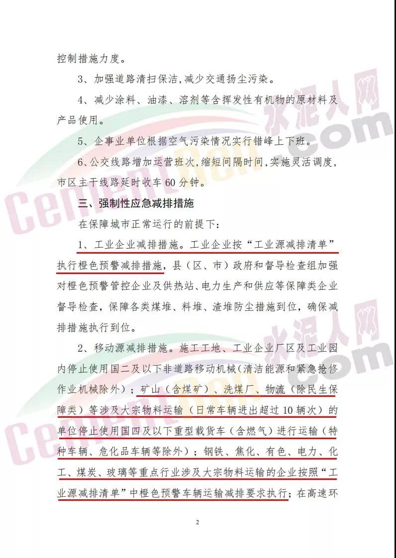 其中橙色以及以上预警天气要求水泥生产企业窑磨全停,露天矿山全部停止开采,商砼搅拌站停产,大宗物资运输停限运,除重点工程外所有工地停工。
