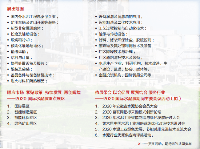 Cementtech(水泥展)作为行业内影响力最大的专业展,展出面积超过20000平方米,为国际水泥相关设备制造商和服务供应商提供客户开发、渠道拓展和品牌宣传维护等专业服务;凭借十余年的专业经验,水泥展已成为行业内最具影响力和号召力的服务贸易平台!