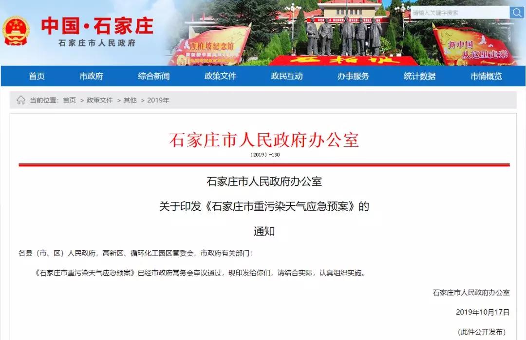 前不久,石家庄市人民政府办公室也印发了《石家庄市重污染天气应急预案)。